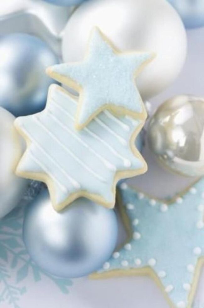 Sweet winter magic sparkles through star-shaped cookies nestled among glistening ornaments, weaving a delightful holiday scene that whispers pure joy.