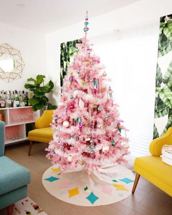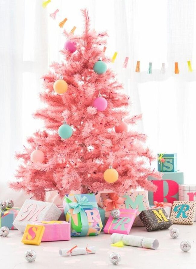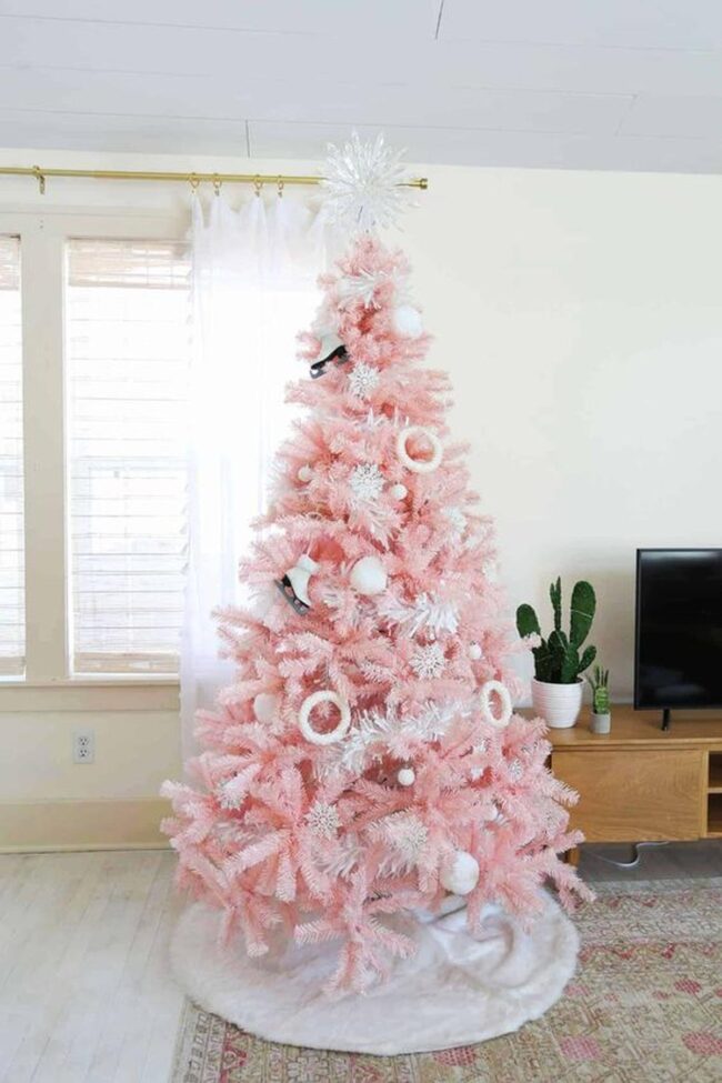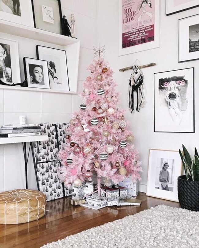 Pink sparks magic when decorating your Christmas tree, breaking free from classic green with a stunning visual symphony.