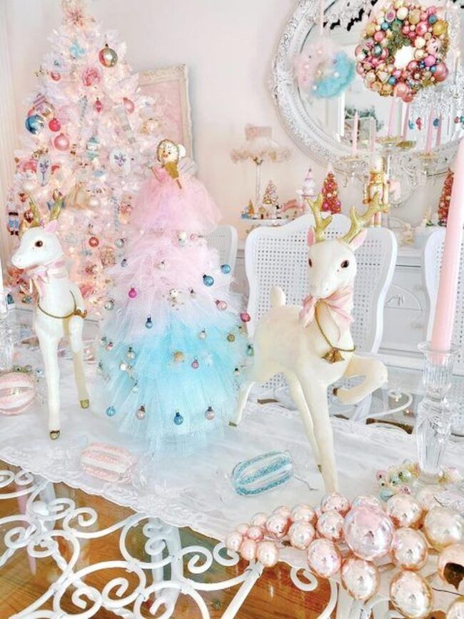 Soft hues and enchanting ornaments define magical pastel Christmas decor as an increasingly popular way to celebrate the holiday season.
