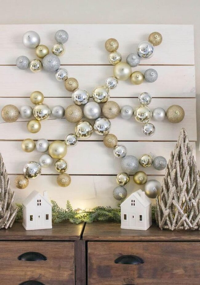 Silver and gold snowflake ornaments create stunning wall displays that instantly capture attention and draw curious eyes.