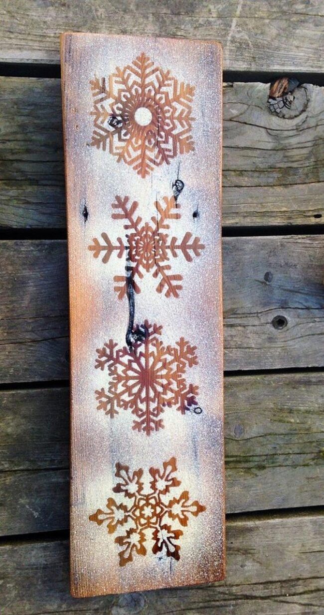 Wooden boards whisper winter magic through their natural charm and artistic flair.