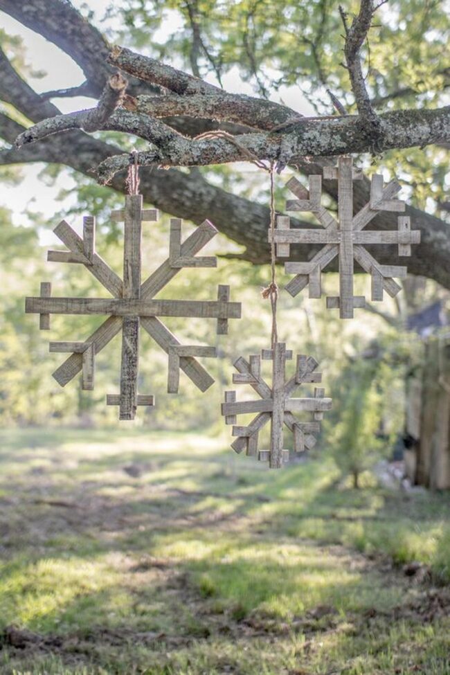 Wooden snowflakes bring winter magic into your living spaces with their delicate charm and intricate designs.