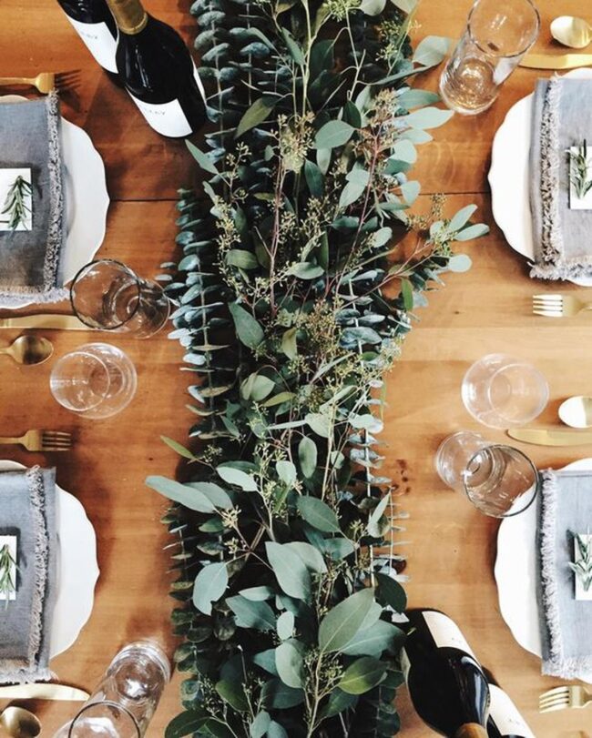 Delicate green garlands wind gracefully down the center, bringing fresh energy and natural vibrancy to your gathering space.