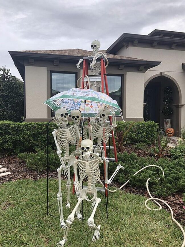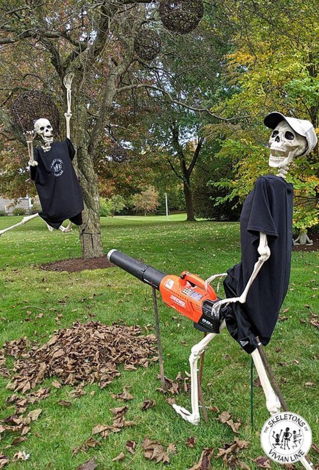 Skeleton displays burst with cheeky humor, turning ordinary backyards into neighborhood chat magnets.