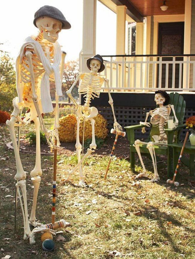 Every skeletal pose tells a story of fun and unexpected humor that makes you want to craft your own magical outdoor scene.