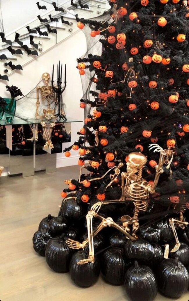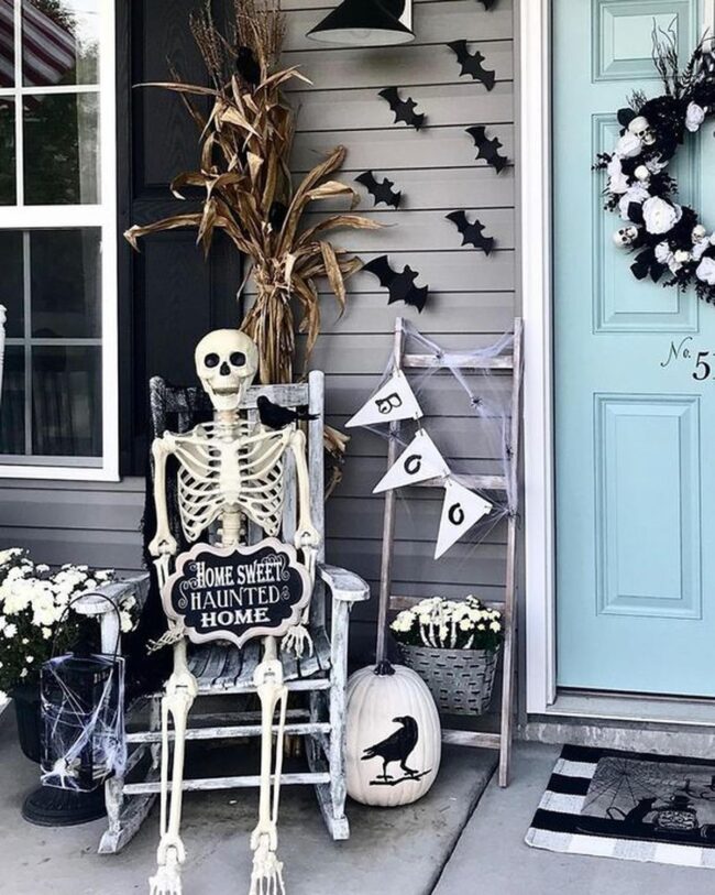 A well-placed skeleton adds personality and laughter, proving that spooky can be stylish too.