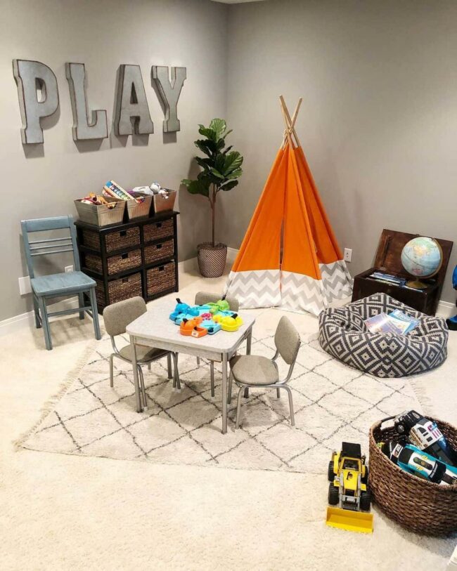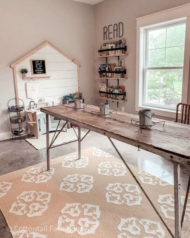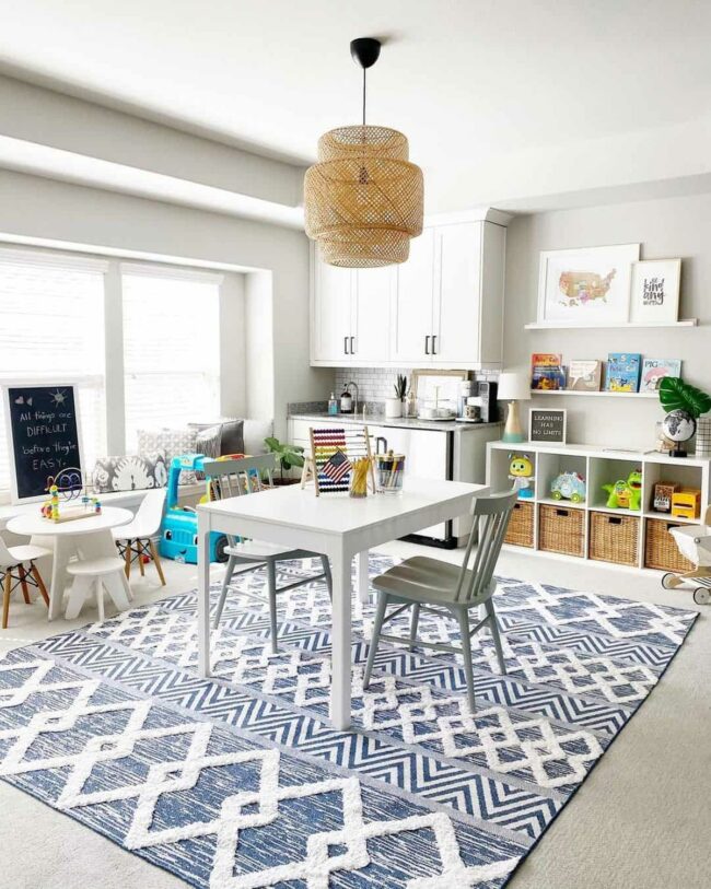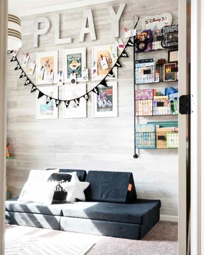 Playrooms burst with creativity when modern design meets farmhouse warmth, and this space nails that perfect balance.