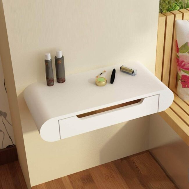 Modern design meets functionality in this white wall-mounted desk, capturing attention with its distinctive rounded shape that instantly elevates any living space.