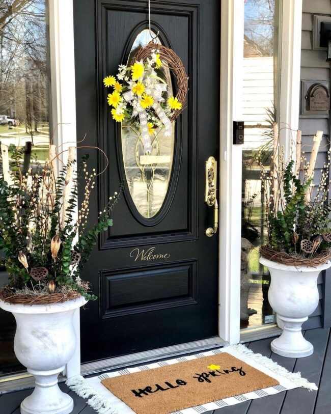 Thoughtful design elements transform an ordinary entrance into a welcoming statement that celebrates spring's renewal.