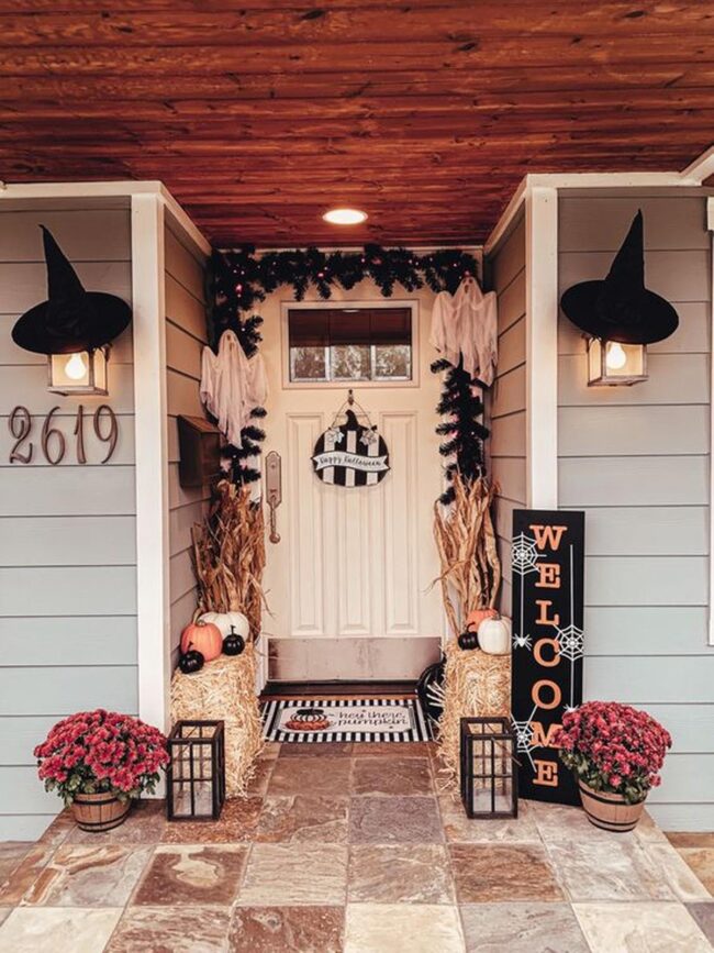 Pumpkins of all shapes and sizes burst with Halloween magic, altering your porch into an enchanting seasonal wonderland.