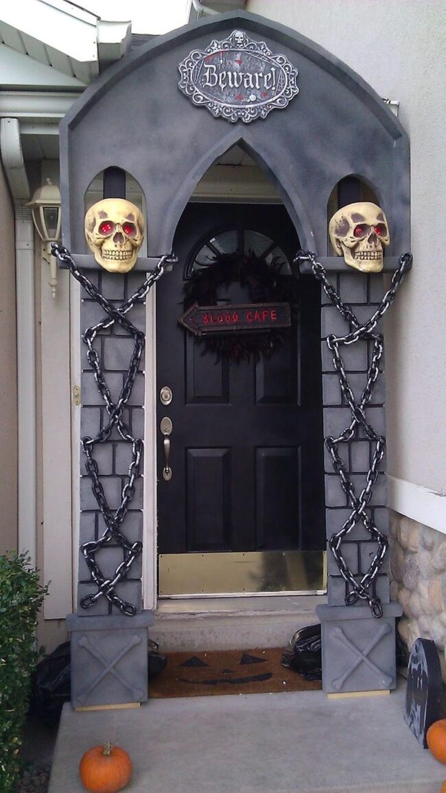 Your neighborhood will definitely pause and stare when they see how brilliantly you can refashion an ordinary entrance into an extraordinary Halloween experience.