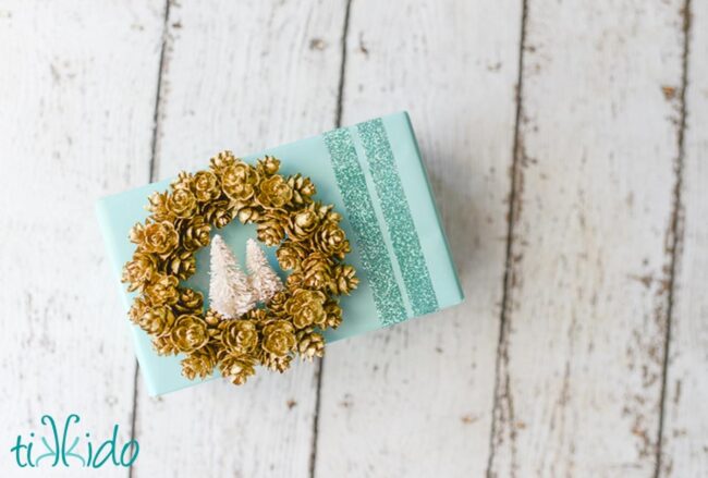 Natural elements like pinecones and twine bring earthly textures that make each package feel deeply personal and handcrafted.