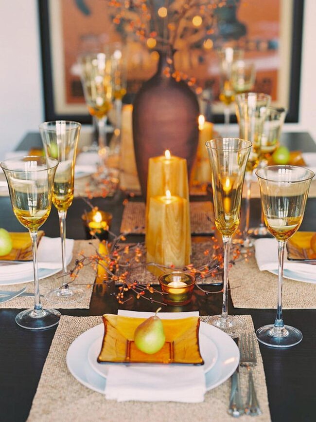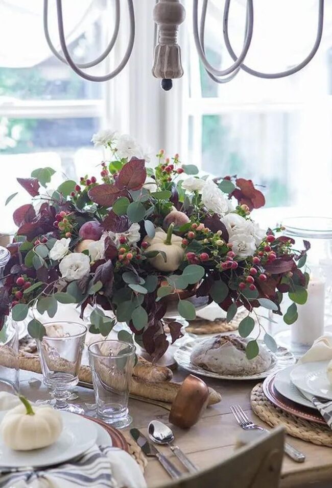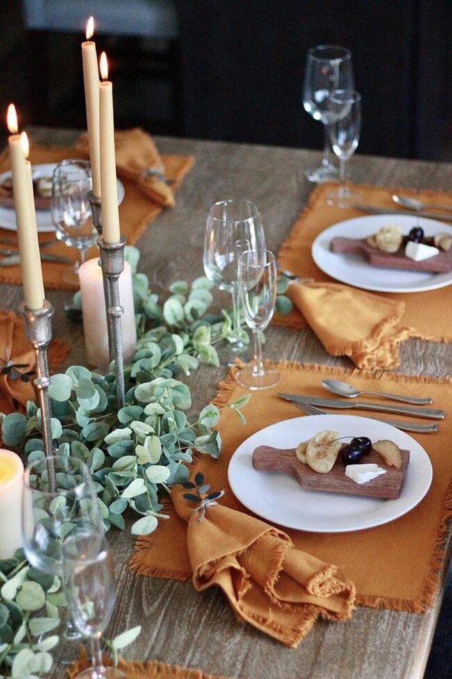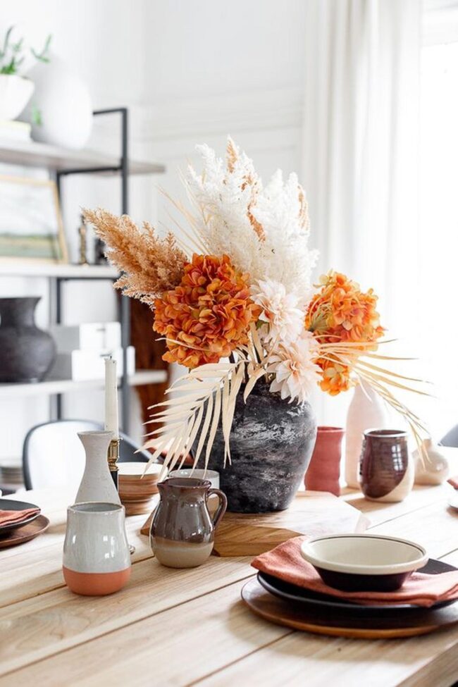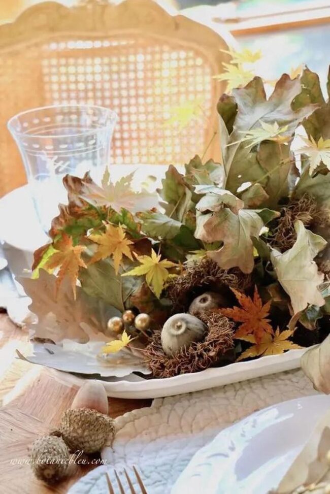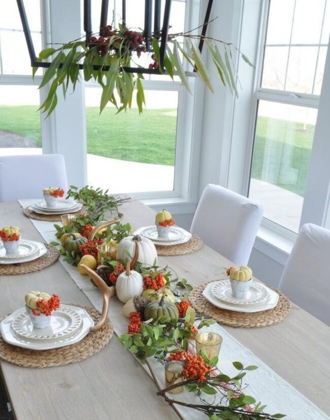 Green branches stretching from a pristine vase breathe natural life into the dining space, creating an enchanting autumn landscape you'll want to recreate immediately.