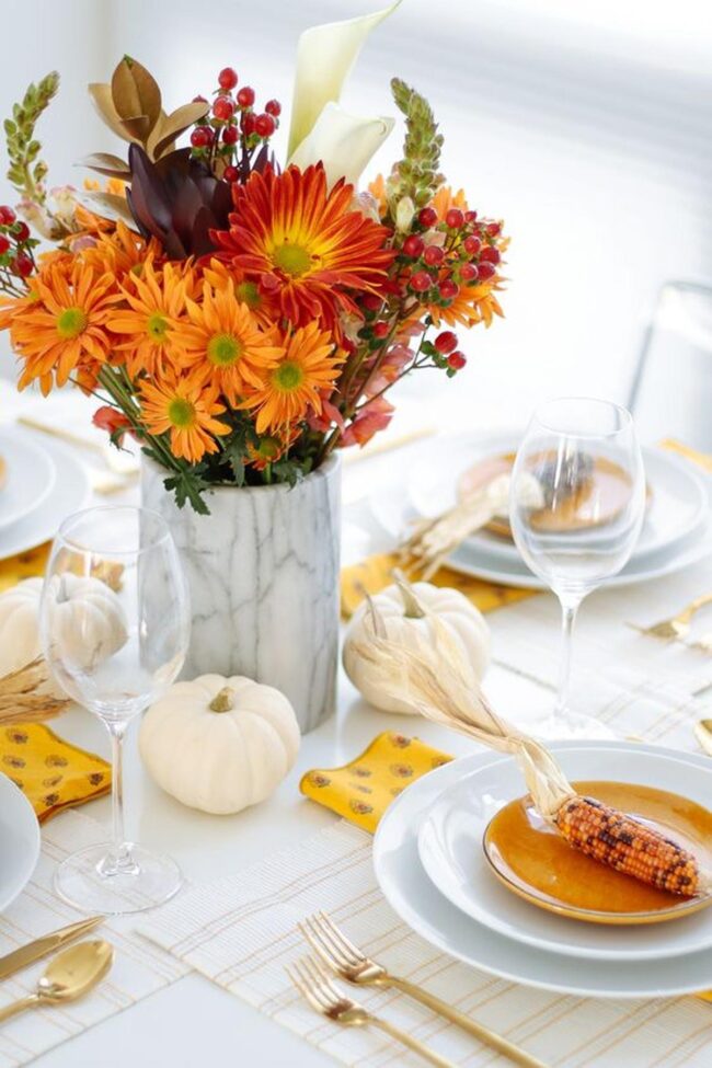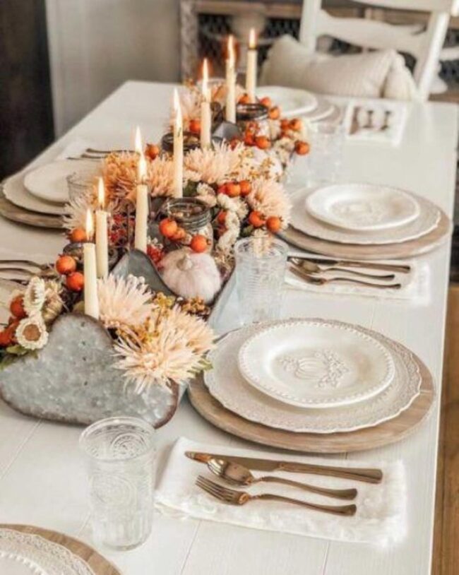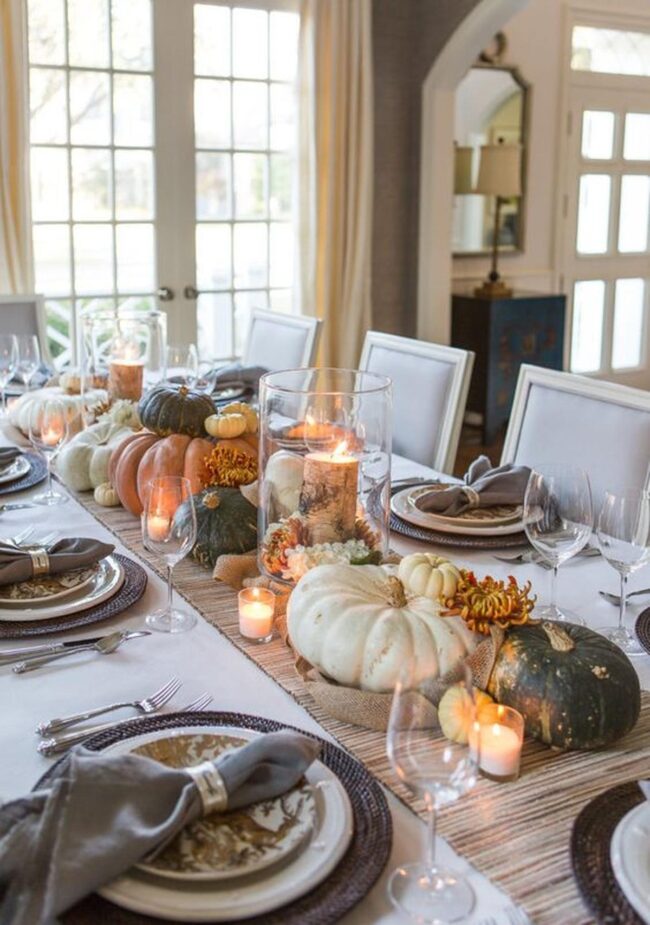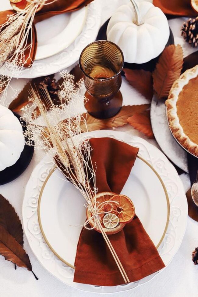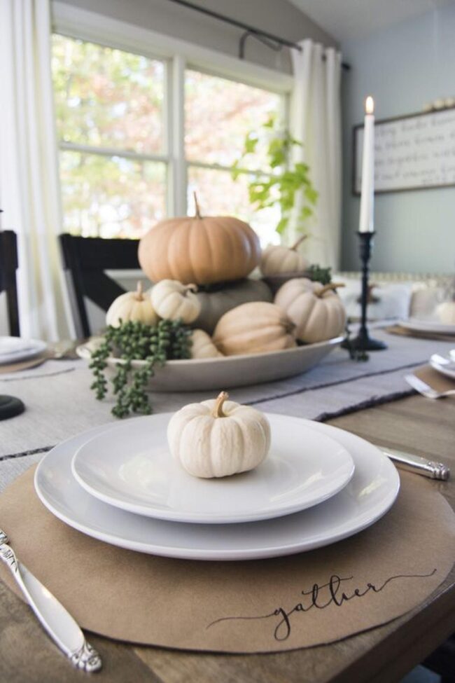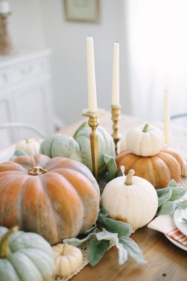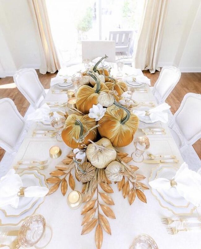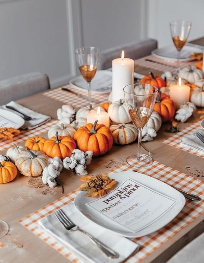 Pumpkins in vibrant orange and soft white burst across your table, instantly revamping an ordinary dining space into an autumn sanctuary.