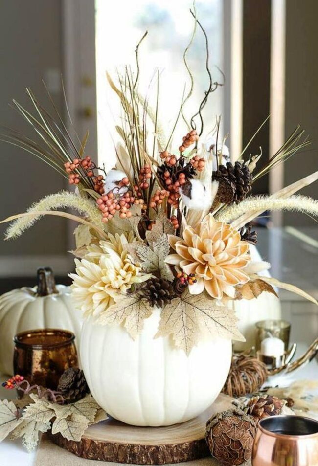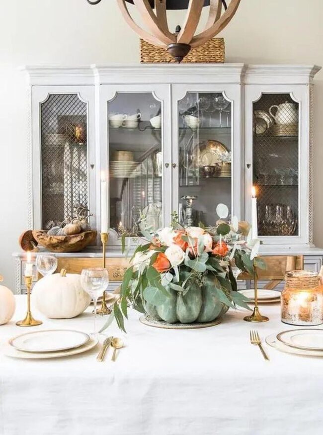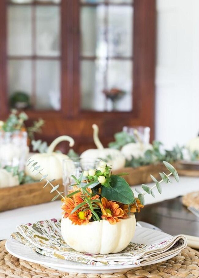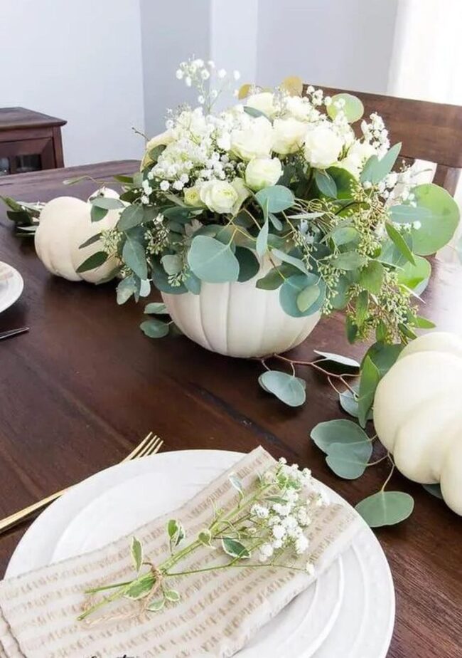 White pumpkins become stunning vases that instantly grab attention, revamping your dining space with unexpected charm.