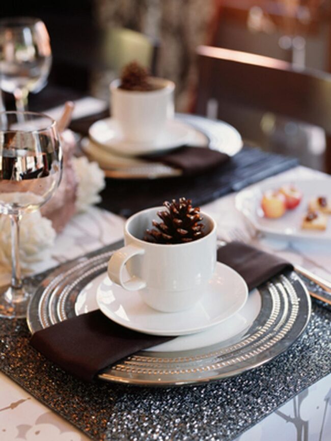 Tiny pine cones scattered artfully across place settings bring woodland charm directly to your table, connecting diners with nature's subtle beauty.