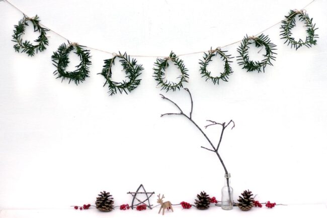 Green leaf wreaths softly embrace walls, pulling outdoor magic inside with subtle grace.