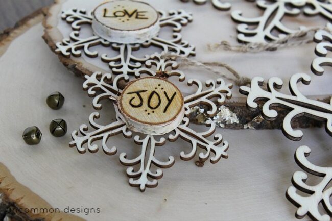 Handcrafted pieces feature round wood centers displaying heartwarming messages which instantly connect with anyone's festive spirit.