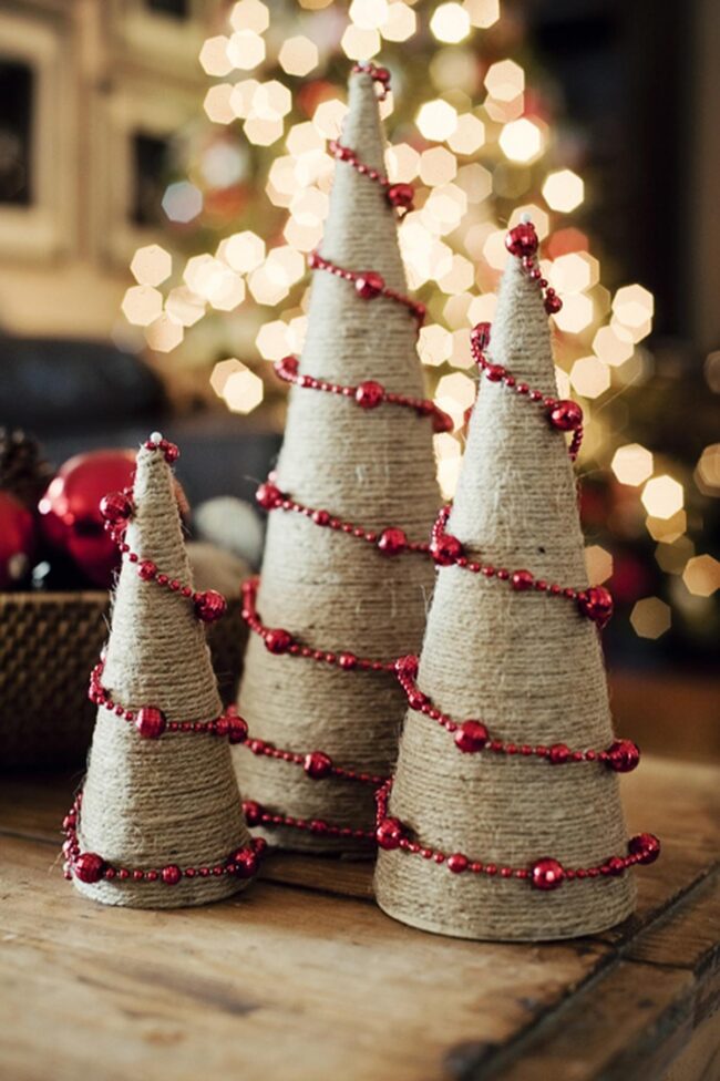 Sparkling red bead garlands wind gracefully around these delightful cones, creating visual magic that feels both personal and inviting.