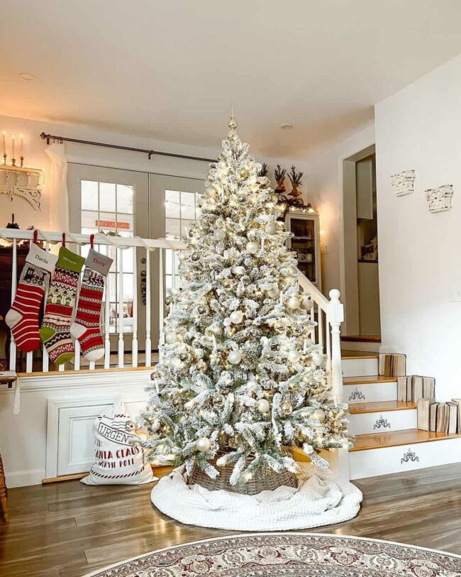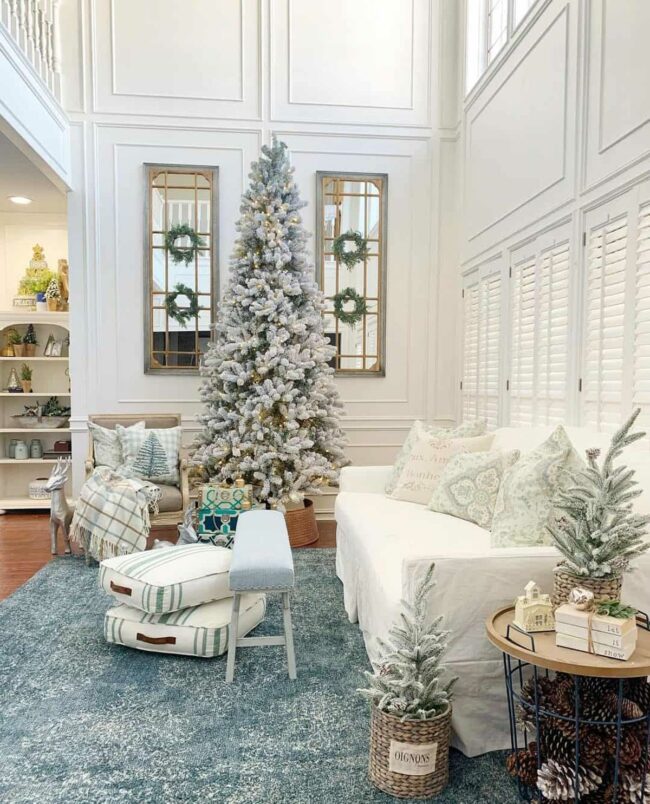 Flocked Christmas trees spark magic in holiday spaces, instantly transforming rooms with their enchanting winter charm.