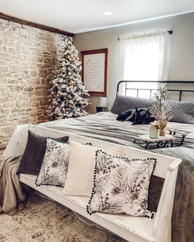 Subtle seasonal details create an atmosphere of genuine celebration, transforming the room into a perfect holiday sanctuary.