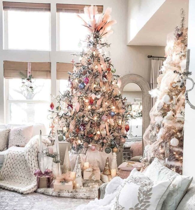 Holiday decor gets a stunning makeover with light pink Christmas tree ornaments that elevate traditional themes.