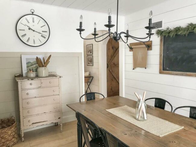 Shiplap walls reflect delicate light, creating an airy sanctuary for gathering.