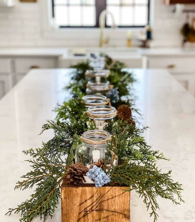 Pine branches bring natural woodland elegance to the kitchen scene.