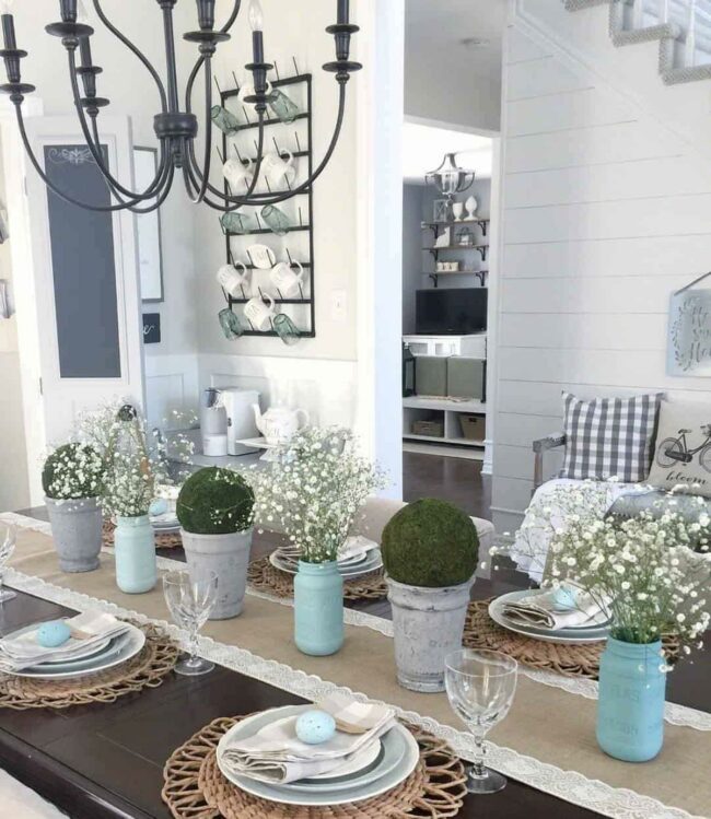Blue Mason Jars Spring Garden Centerpiece