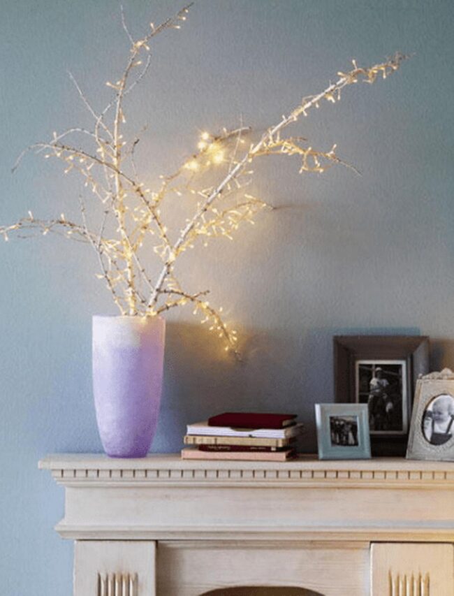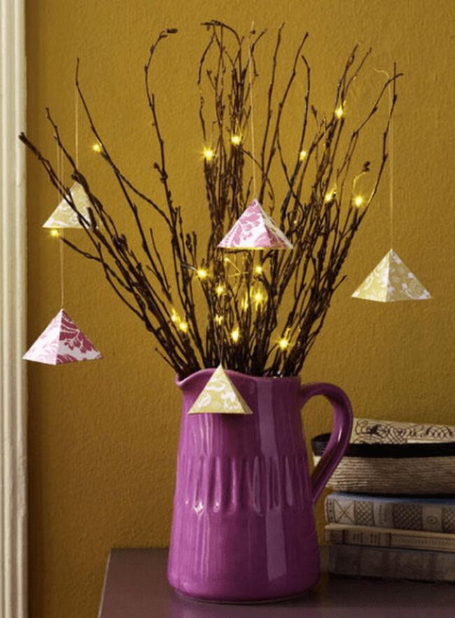 Delicate yellow light dances between carefully positioned wooden twigs, casting enchanting shadows across your walls and drawing eyes instantly.