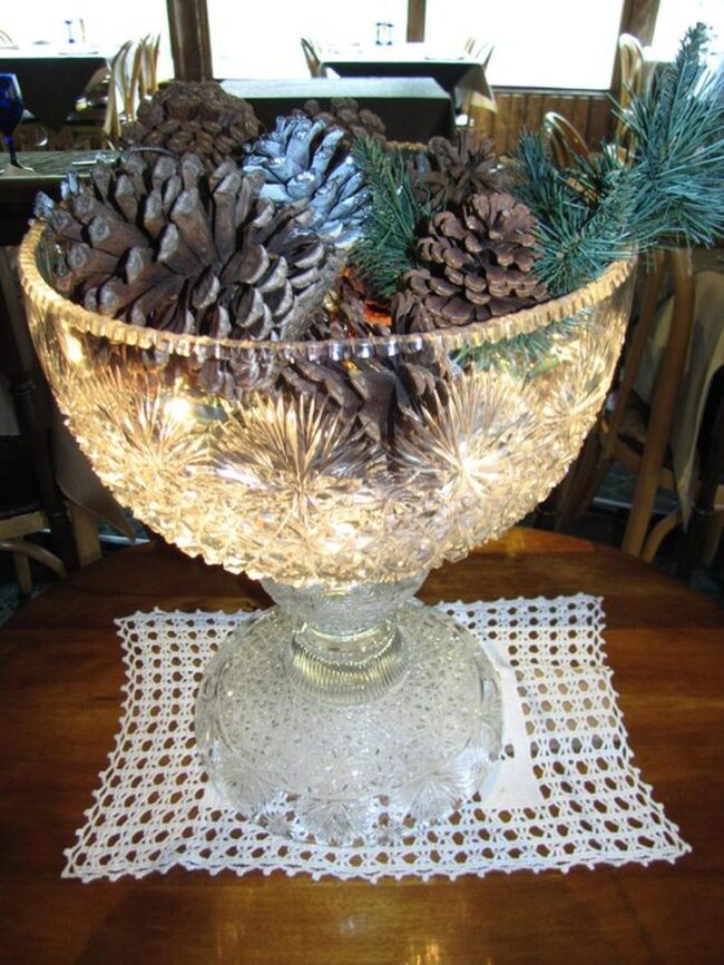 Pine cones and verdant branches peek out from inside, magically connecting your indoor space with outdoor beauty.