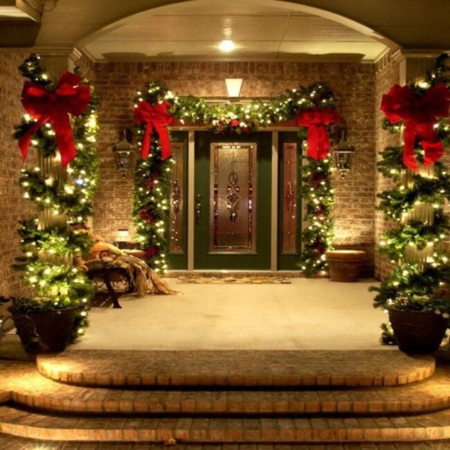 Deck out your porch with holiday cheer that'll make neighbors stop and stare! Green garlands drape beautifully around your doorway, instantly reshaping the entrance into a festive wonderland.