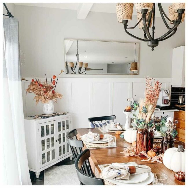 Fall's warmth radiates through this dining room's classic orange and white palette.