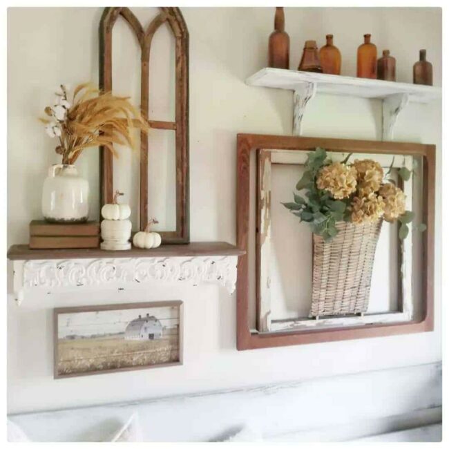 Neutral foundations like vintage corbels and elegant mirrors create a sophisticated canvas for changing displays.