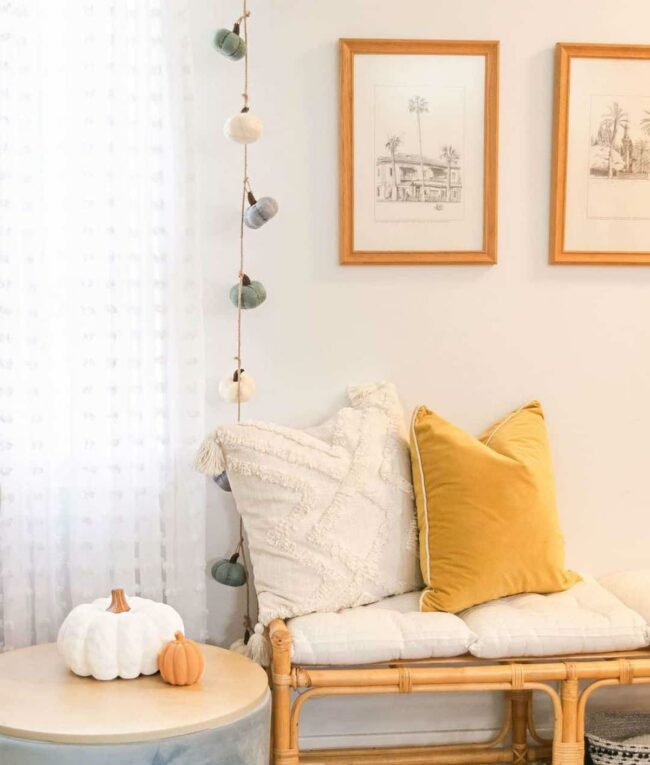 Home designers love autumn's warm palette, especially when light yellows and whites create a relaxed boho atmosphere.