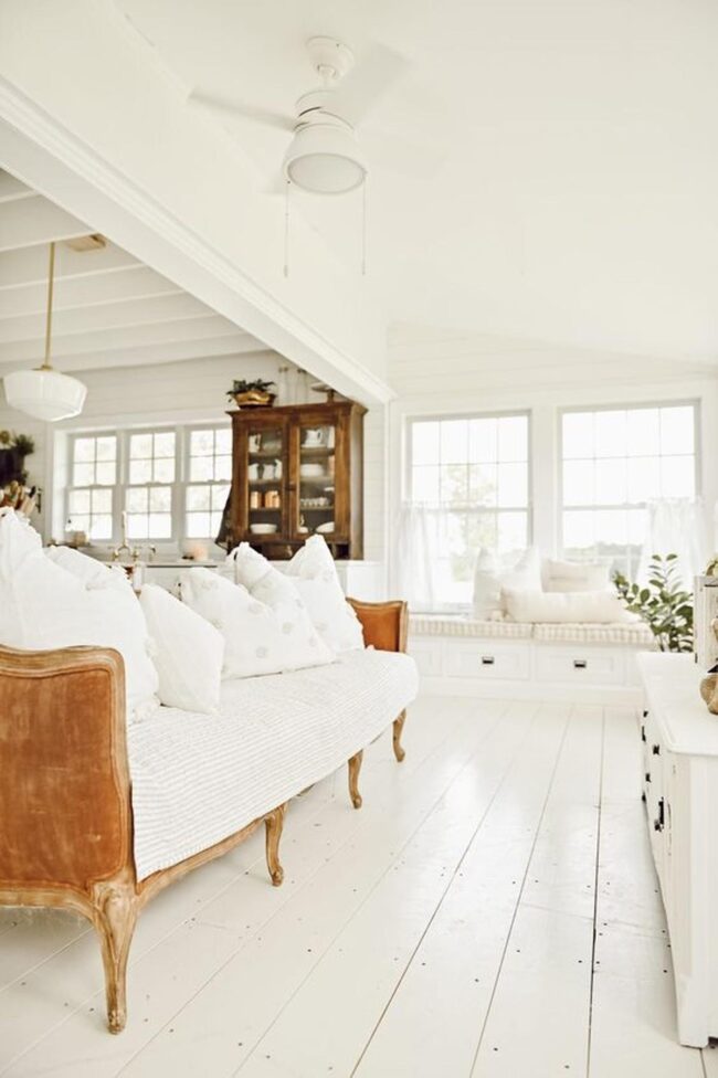 Soft pale walls reflect sunlight beautifully, creating an expansive feeling that shifts gracefully between seasonal moods.