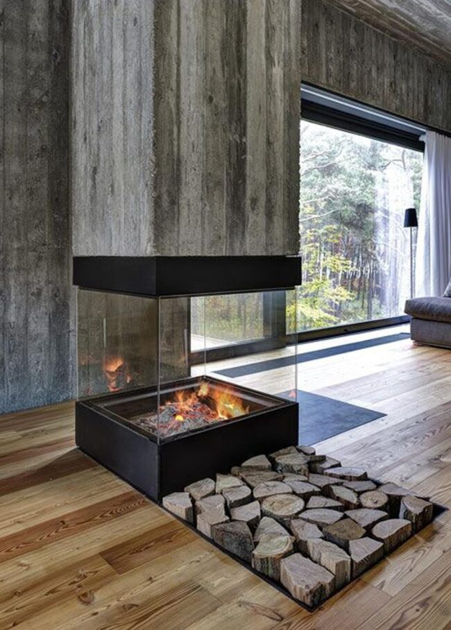 Carefully stacked firewood beside the hearth brings outdoor authenticity into your living area, making every corner feel intentional and personal.