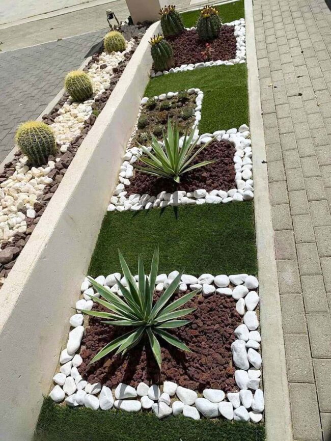 Succulents with diverse shapes and colors populate these artistic beds, offering a dynamic living sculpture that evolves with subtle seasonal changes.