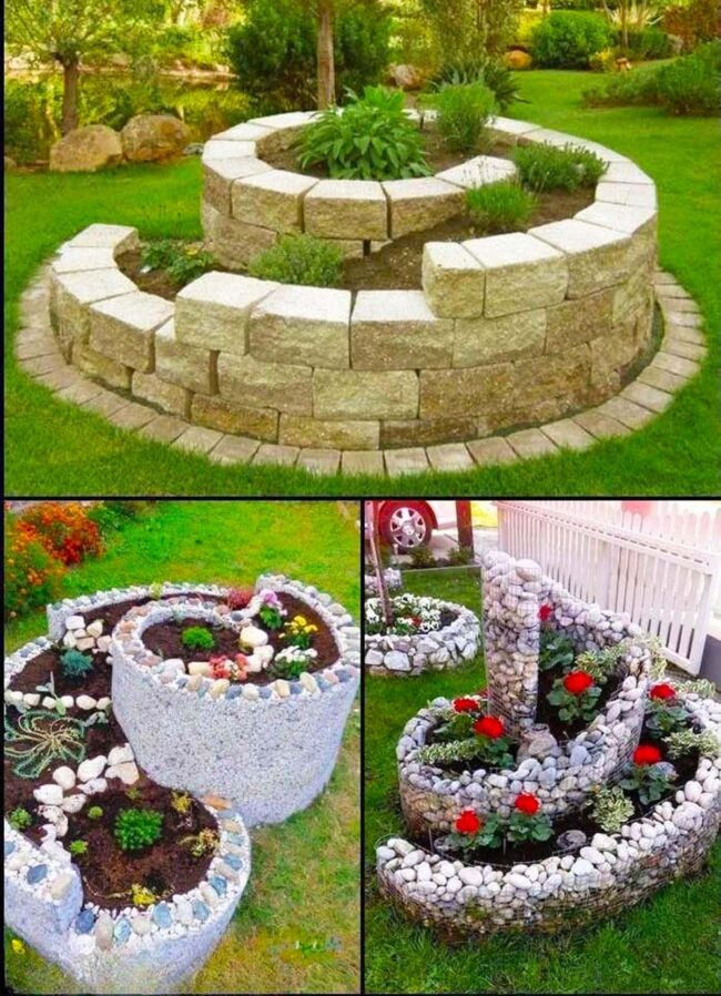 Spiral configurations and layered circular structures create stunning focal points that draw immediate attention to outdoor spaces.