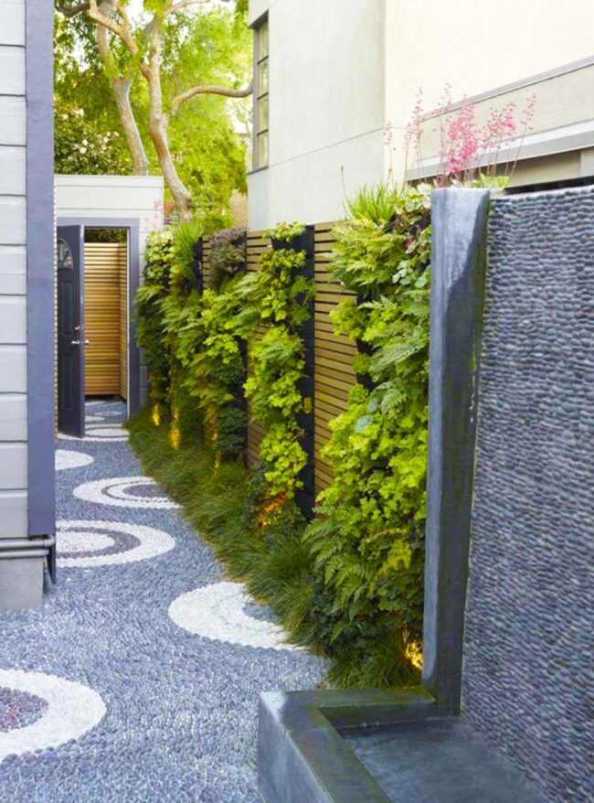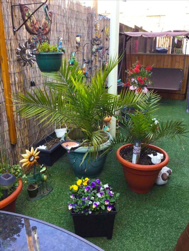 Metal wall art or painted blocks can elevate the aesthetic, turning a simple garden into an artistic statement.