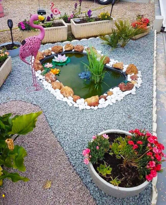 Small flowering plants nestled between stones add delightful pops of color and subtle fragrance.