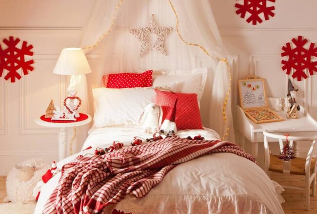 Colorful ornaments, whimsical characters, and cheerful accents can turn an ordinary bedroom into a seasonal celebration that feels special and memorable.