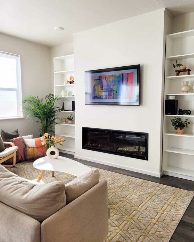 Bookshelves surrounding a fireplace instantly elevate your living room's charm and sophistication.