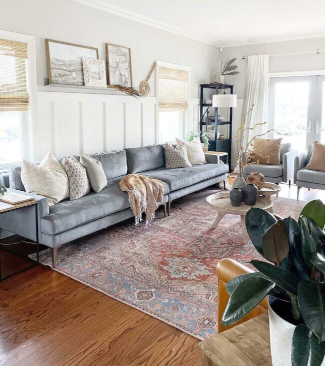Textured rugs and earth-toned pillows add depth and warmth to your space.