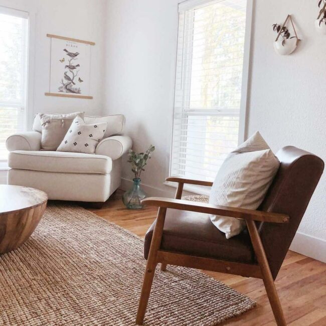 Textured jute rugs ground the area with earthy tones and subtle texture.