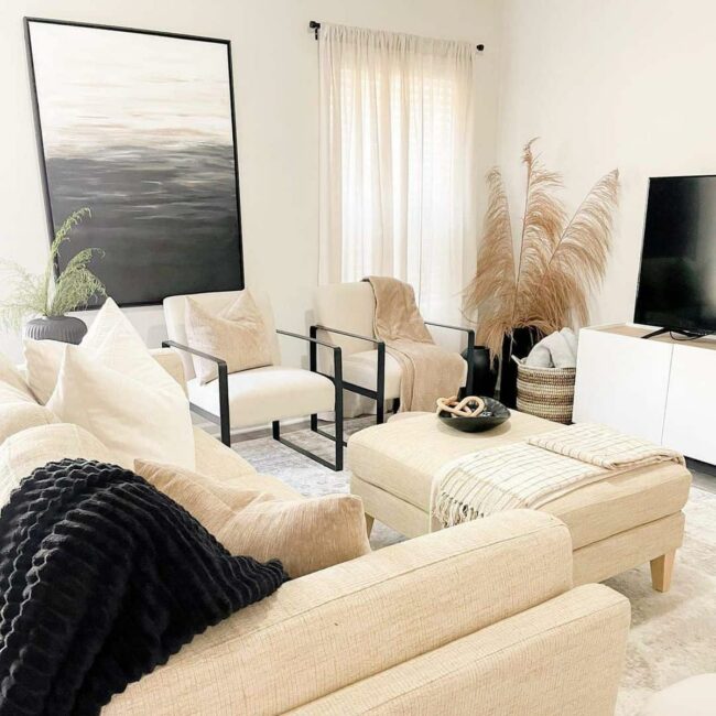 Neutral tones create a calming atmosphere perfect for quiet moments or casual gatherings.