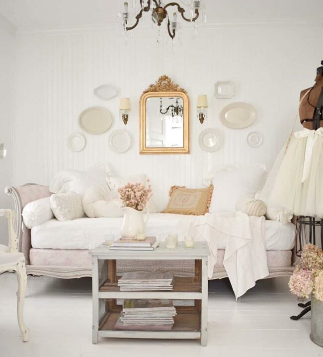 Simple details like embroidered throw pillows and handcrafted ceramics complete this enchanting design approach.