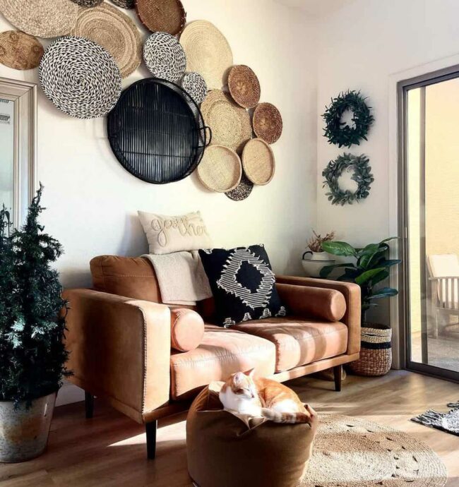 Woven basket wall decor elevates living spaces with an artistic blend of textures and intricate designs that capture instant attention.