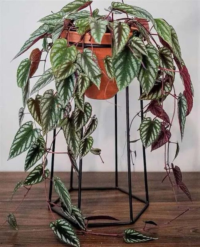 Rex begonia vine enchants plant lovers with its dramatic foliage featuring deep green leaves and rich purple undersides that create an instant visual masterpiece.