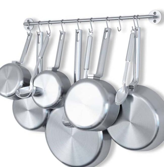 Robust metal racks provide seamless solutions for managing cookware collections with minimal effort.